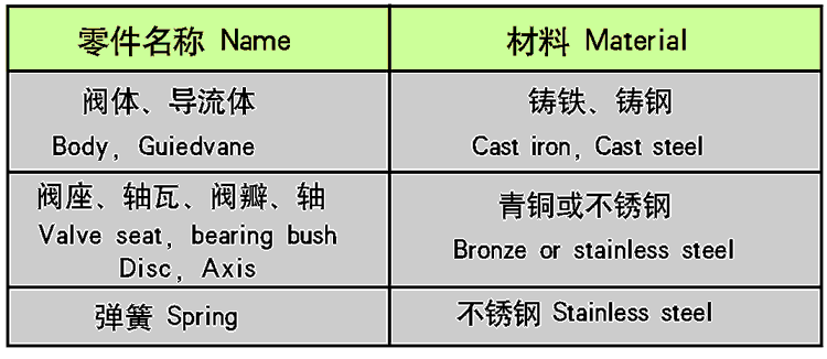 該閥由閥體、閥座、導(dǎo)流體、閥瓣.軸瓦及彈簧等零件組成。內(nèi)部流道采用流線型設(shè)計(jì),壓力損失