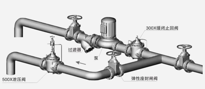 SHT500X泄壓持壓閥可將給水管中超過引導(dǎo)閥安全設(shè)定值之壓力釋放,并維持管中壓力于一安全設(shè)定值以下,以防止管中高壓或突壓(SURGE)毀損管線或設(shè)備。可用于高層大樓消防測試循環(huán)系統(tǒng)之泄壓用,以防止水壓過高造成系統(tǒng)危險。持壓閥:可維持主閥上游供水壓力于某一設(shè)定值以上,以保障主閥上游供水區(qū)之壓力。